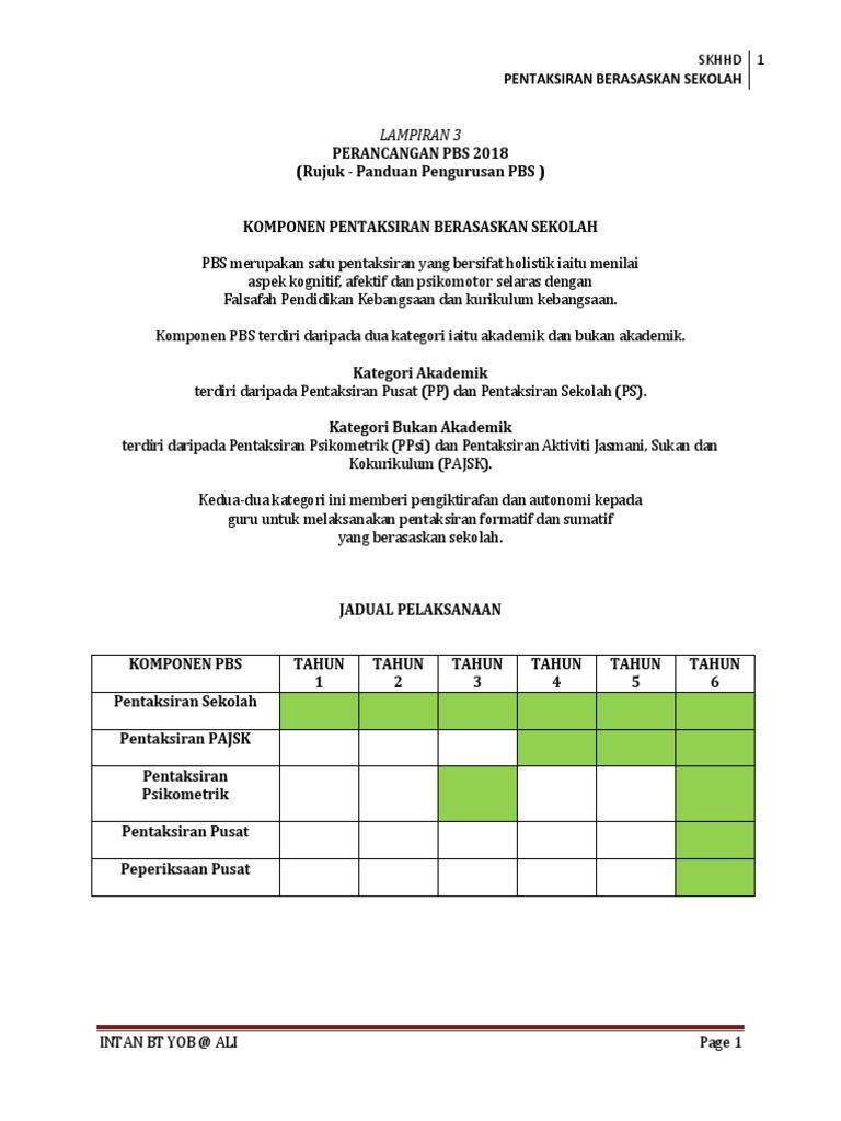 Pentaksiran Berasaskan Sekolah 2018 : Modul perekodan perkembangan pembelajaran murid disediakan bagi membantu guru merekod perkembangan penguasaan pembelajaran murid dalam pentaksiran sekolah (ps) berpandukan panduan.. Program kerja ini dibuat untuk mengetahui jadwal kerja pada operator sekolah selama 1 tahun.full description. Contoh operasi dan skor inventori kecerdasan pelbagai (tahun 6). Justeru, mesyuarat jemaah menteri bertarikh 17 disember 2010 telah bersetuju supaya pentaksiran berasaskan sekolah (pbs) dilaksanakan sebagai sebahagian daripada program transformasi pendidikan. Faham pentaksiran bilik darjah (pbd) dengan lebih mudah. Pentaksiran berasaskan sekolah atau singkatannya pbs ialah satu pentaksiran yang bersifat holistik iaitu menilai aspek kognitif, afektif dan psikomotor selaras dengan falsafah pendidikan kebangsaan dan kurikulum kebangsaan malaysia.