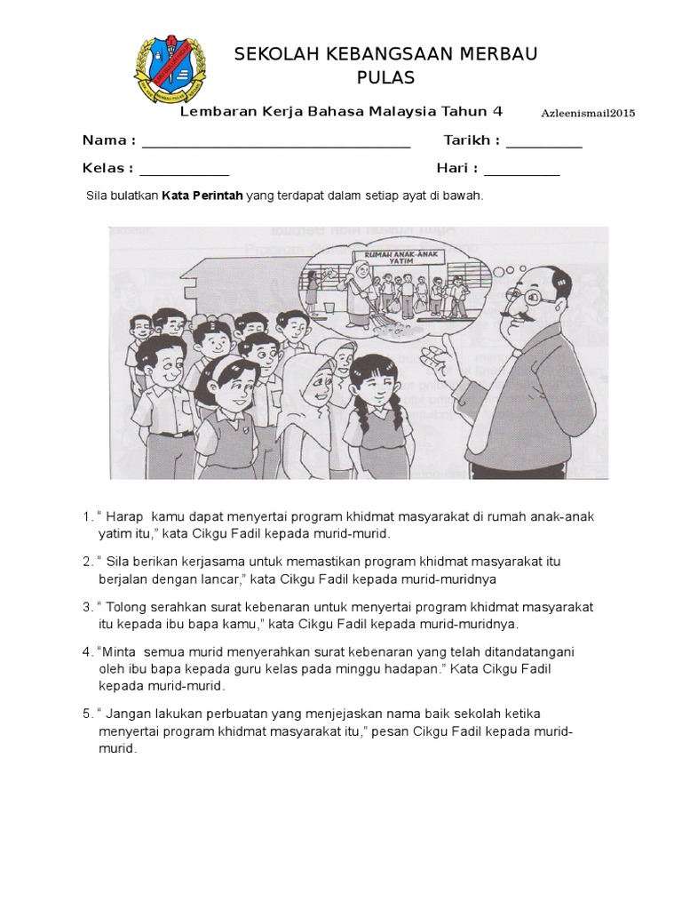 Facebook from lookaside.fbsbx.com Latihan kata perintah bm tahun 4. Kata perintah ialah kata yang bertujuan menimbulkan sesuatu tindakan terhadap arahan, larangan, perintah, silaan dan pemintaan. 2) digunakan untuk membentuk ayat perintah. Kata perintah ialah ayat yang diucapkan 3. Bahasa melayu (bm) tahun 3 grade/level: Bahasa melayu tahun 2 ahad 29 november 2020. Melalui kurikulum ini, pembelajaran bahasa melayu lebih menekankan penyataan standard kandungan (sk) dan standard pembelajaran (sp) yang perlu diketahui dan mampu dilaksanakan oleh murid. Temanku bilang, kamu sih bilang kuluu wa isyrabu, itu kata perintah.