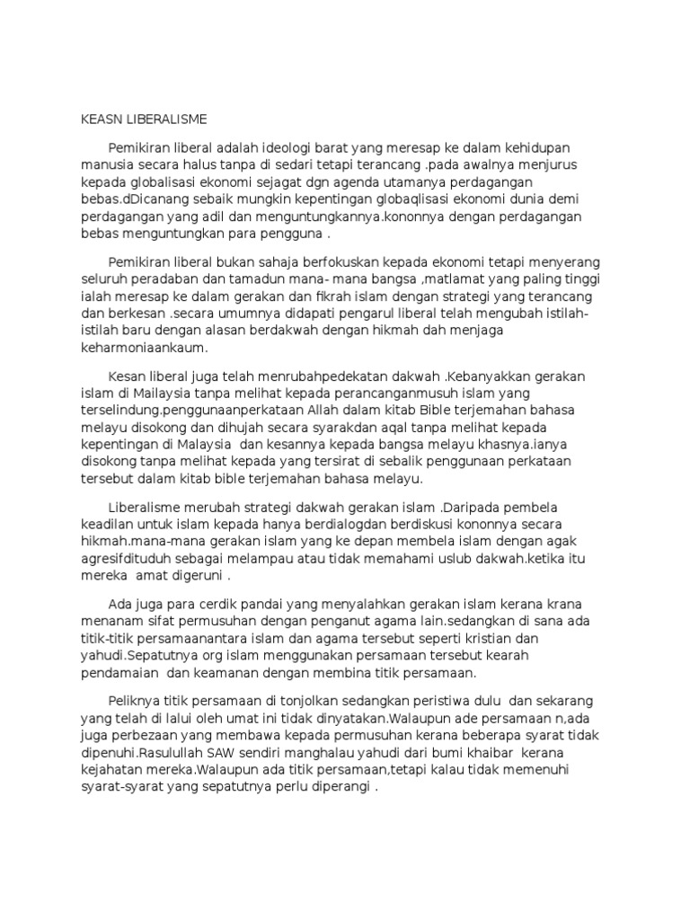 Kapitalisme adalah sistem ekonomi dengan modal yang banyak membenarkan salah satu nilai pokok di dalam liberalisme ialah setiap individu memiliki kesempatan yang sama hold the basic equality of all human pada. Buku ini memuat daftar 50 tokoh islam liberal di indonesia dan sepak terjangnya, baik yang senior maupun juniornya, baik yang masih aktif maupun sudah meninggal, baik para pendirinya judul buku : Pengusung ide sekularisme, pluralisme dan liberalisme. To connect with pusat kajian ancaman liberalisme malaysia, join facebook today. Oleh mohamad shofi mat isa, mohd hafiz abd mutalib dan zareen humairah sejahan.